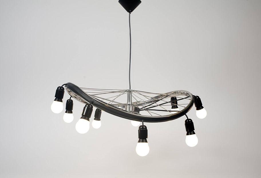 The bike chandelier was that product for me! After a car accident in 2011, my bike wheel was totally deformed. The shape intrigued me, and I wanted to remember this experience with a piece that reflects 'who I am'. I always look for new possibilities to improve current situations. It is not always necessary to start over completely but work with the context you have and make it relevant, beautiful, meaningful and fun again.